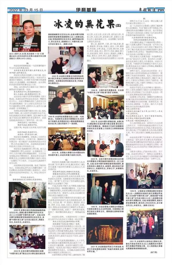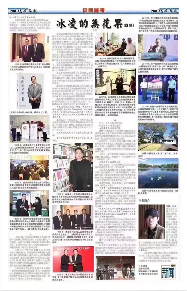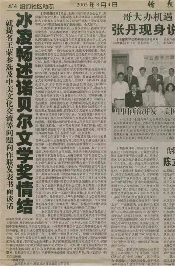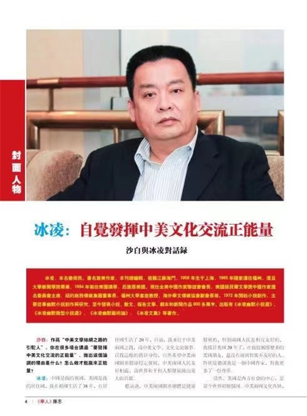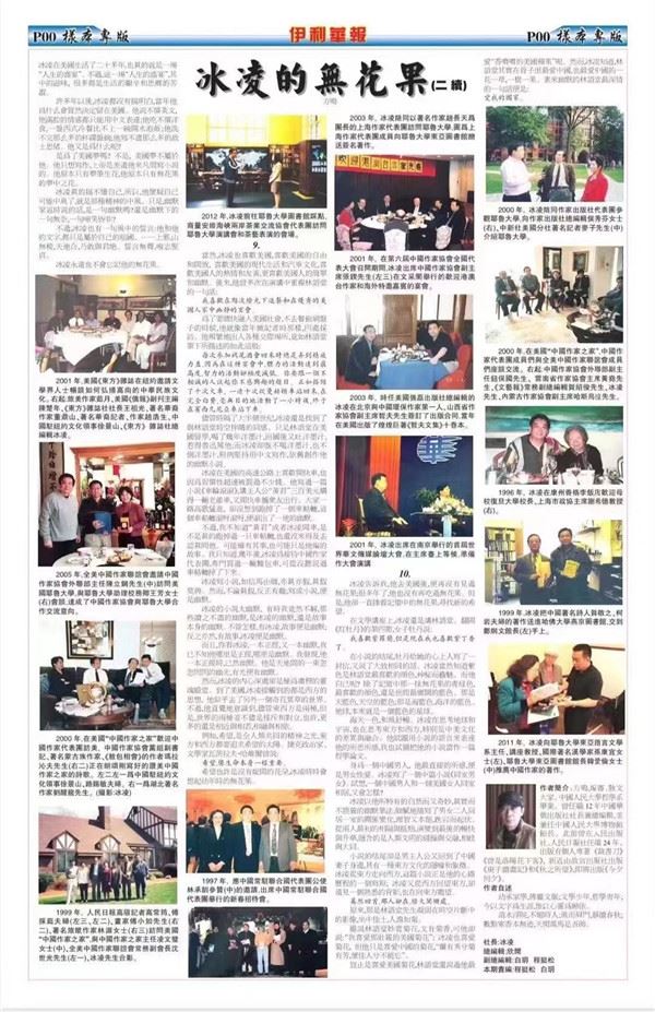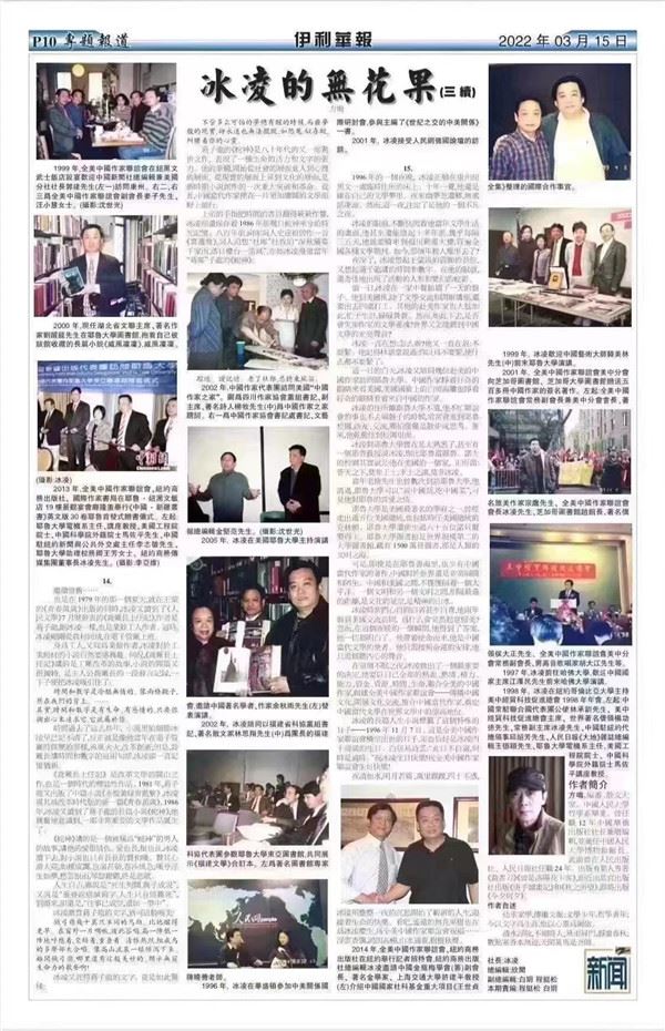 1996年冰凌在美国成立了全美中国作家联谊会,发起中国作家向哈佛、耶鲁、哥伦比亚大学签名赠书活动,在美国建立“中国作家之家”,成立诺贝尔文学奖中国作家提名委员会提名中国作家等等。