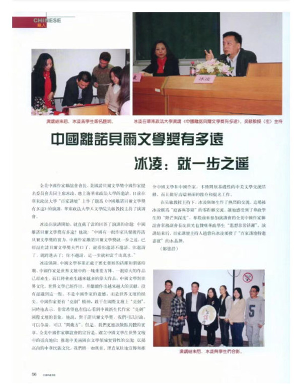 在一个半小时的时间里,冰凌侃侃而谈,与大家分享了自己的写作经历、取得成功的经验以及四十多年创作的宝贵心得。
