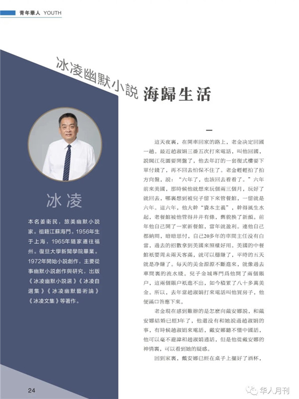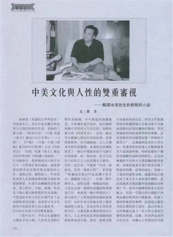 冰凌想了一下说:“你是第0、9人。”对方喜笑颜开。这段打工生活的“深刻体验”,成就了冰凌的经典幽默中篇《旅美生活》。