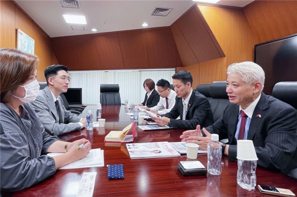 結束了對兩位日本政要的拜訪後,7月5日下午,呂英傑攜日本分社高層驅車前往香港特區政府駐東京經濟貿易代表部進行交流。香港駐東京經濟貿易代表部是香港駐海外14個辦事處之一,自成立以來,辦事處致力推進香港和日本各界溝通對話,在鞏固和拓展務實合作等諸多方面成就斐然。