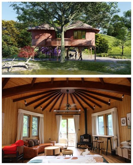 幽兰木屋:隐藏在山野,童话里的树屋就是禧悦庄·幽兰度假屋,其外墙用的是上好的建筑材料-菠萝格,内墙板用的则是红松,松木的香气对于我们身体具有镇静的功效。室内装修的标准全部是五星级定制化产品。住在这里,您可以享受满满的浪漫及野趣之感。