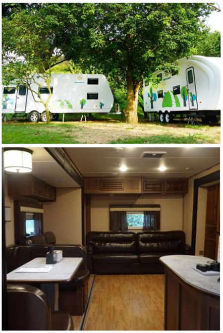 房车基地:分别有星语房车和乐派房车两种类型。其中,星语房车为两室一厅,带有可开启的天窗,入夜即可欣赏漫天的星辰流动,享受一片静谧之美好。乐派房车为一室一厅,带有壁炉等英式装饰,并设有室内卡拉OK等娱乐设施,为您的假期增添一份欢愉。