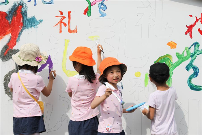 衢州的小学生们在创作衢州有礼画廊。谢丹 摄影