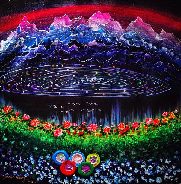△黄建南油画新作《冬奥之花》