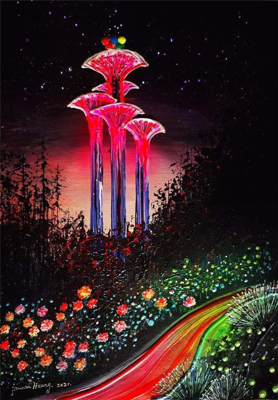 ▲黄建南的油画《奥运盛景》