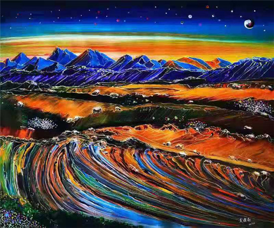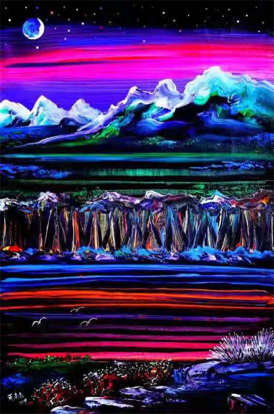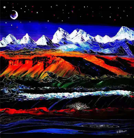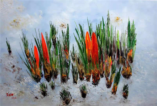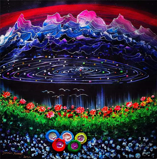 ▲黄建南的油画《冬奥之花》