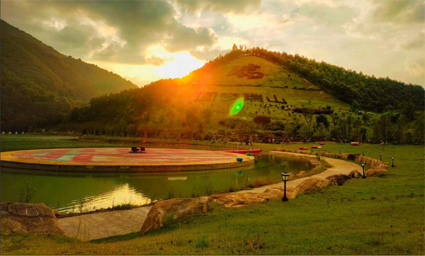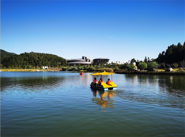吉祥文化,是中国传统文化重要组成,凝聚着中华民族伦理情感、生命意识、审美趣味与宗教情怀,源远流长,博大精深。而汉语文字“瑞”,基本释义就是吉祥。洲瑞镇地处山中盆地,古有“金盆乡”之称。长期以来,这里人以长寿见长,百岁人瑞偏多。瑞山以瑞为名,寄托了人们对吉祥文化的推崇。园区建有长达150米的水上栈道,宛如镶在琴湖的古代吉祥物如意,名为如意道。从山上往下眺望,瑞山的酒店、康养设施便是以如意造型设计的。有人认为像山中蘑菇。现在更多人认为,更像碧玉般的三滴水滴,当地人甚至把此神化为观音菩萨洒落在瑞山的三滴仙水。