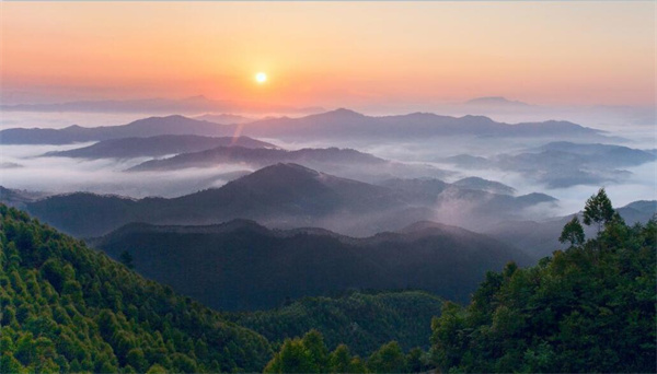 山不算高,秀美而别致。这里的云天、山岚、湖光,还有溪流泉鸣、花香鸟语和人的心愿相融,散发祥和气息,足以令人养心、悟道,乐享生态之美、自然瑰宝。这真是天人合一的祥瑞之地。