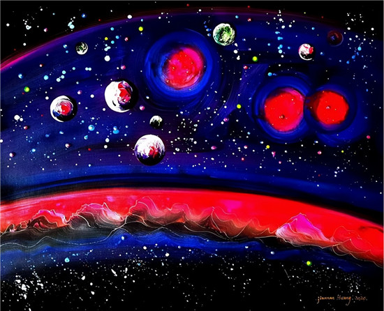 据悉,去年,黄建南被LABA国际艺术节推举的三幅作品《青春之花》《山花烂漫》《千丝万缕之取之不尽》分别被萨拉·莫赫塔里估价超过三百万美元。随后,他的《地球密码1号》《千丝万缕》《天外有天》这三幅作品,又被理查德·韦恩估价超过5百万美元。