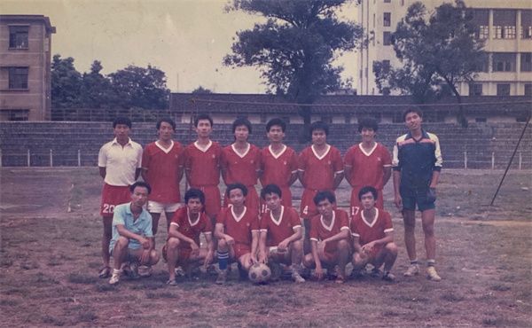 1994年,黄勇作为福建省高校大学生足球队教练参加全省运动会足球项目的比赛,全体教练员、运动员和工作人员合影。