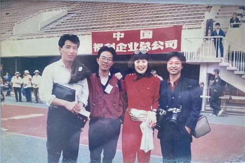 1995年龙都大洒店开业,黄勇等主持开业系列仪式。左起:黄勇、梦雪、弘力、朱宾副总。