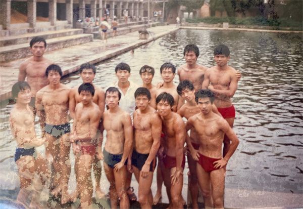 1976年,黄勇与少小游泳队队友陈晓丹、黄勇、陈晓峰、黄金腾一起合影。