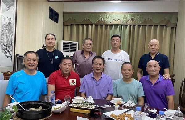 当年游泳队队员近期相聚,合影留念:前排左起:省税校原副校长张贵来、黄勇、华侨大学体育部陈晓丹教授、民营企业家林志平董事长、莆田市少体校游泳中心总教练陈晓峰,后排左起:莆田市移动公司办公室林兵主任、企业家代表郭孟秋、福建省奥体中心保卫科原副科长黄金腾、莆田市烟草专卖局办公室原副处级办公室主任苏玉福。