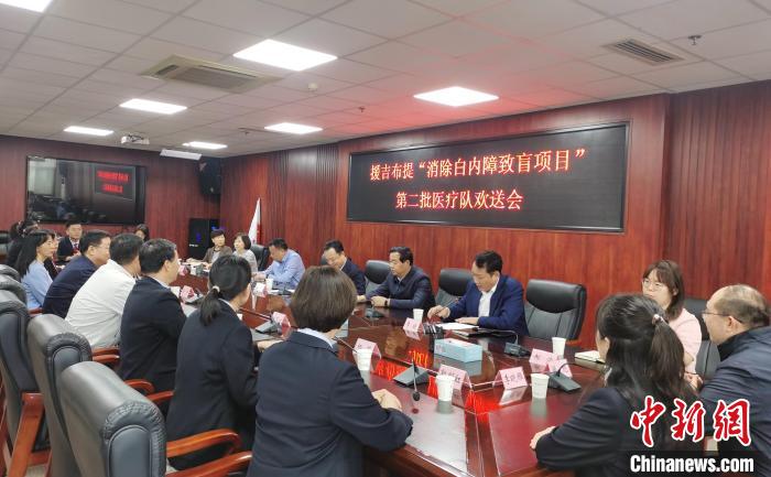 27日,山西援吉布提“消除白内障致盲项目”第二批医疗队欢送会在山西太原举办。由山西省眼科医院8名医护人员组成的医疗队,不日将奔赴非洲吉布提,执行为期60余天的“消除白内障致盲项目”任务。