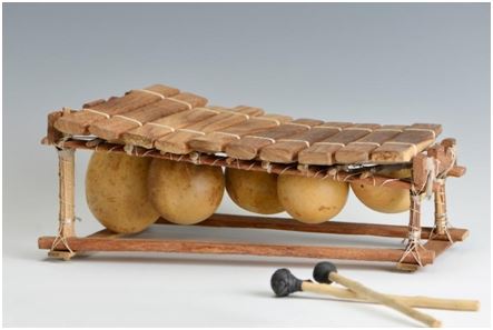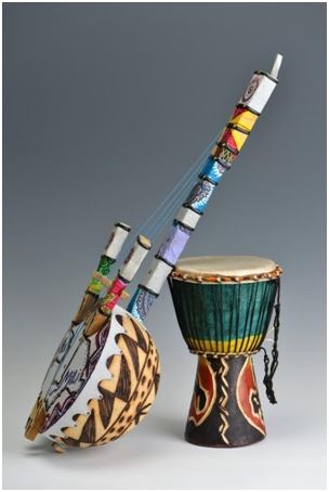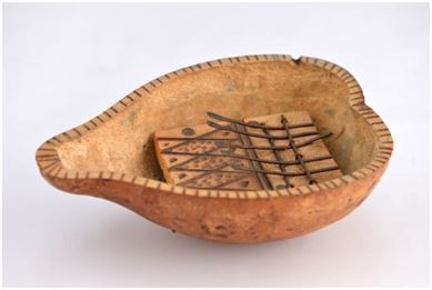 Gourd musical instruments and utensils are the major components of African gourd culture. For example, a maraca is a musical instrument made from gourd. A layer of glass beads or shells is inlaid in the surface and holes are cut in the bottom through which loud and powerful sound can be produced that demonstrates the strong physique and profound gourd culture of African people, just like gourd containers on their heads.