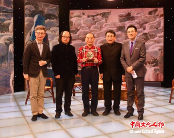 韩玉臣与中国艺术研究院油画院院长杨飞云、中国国家画院原副院长张晓凌、《美术》杂志社社长兼主编尚辉等专家学者在节目现场合影