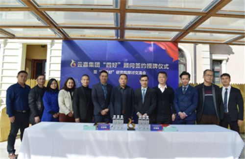 左和鸣秘书长、蔡畅总干事与陆加壹集团副总裁、壹嘉集团总裁蓝庆文,云嘉“四好”研究院相关负责人及壹嘉集团负责人张锋发、陈其静、李展和、龙慧琴、廖玉荷、杨金全、田忠新等在签约仪式上合影。