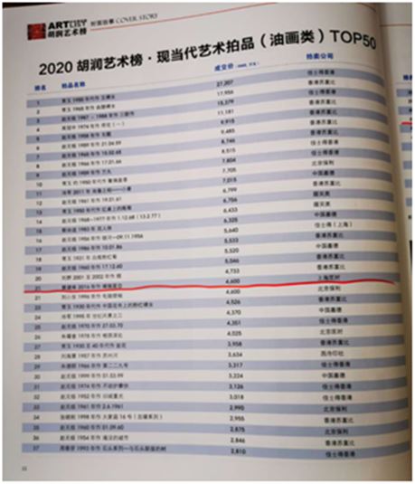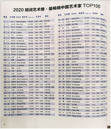 《2020胡润艺术榜》前十排名