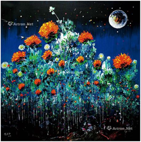 此外,《2020胡润艺术榜》还对现当代艺术拍品(油画类)前50名进行了排名,常玉于1950年创作的《五裸女》及1965年创作的《屈腿裸女》分别以2.7207亿元、1.7956亿元的成交价夺得第一、第二宝座,赵无极于1987-1988年创作的《三联作》,以1.5379亿元的成交价夺得排名第三,黄建南则凭借2016年创作的布面油画《璀璨星空》(如下图),以4600万元的成交价列居第21位。