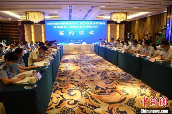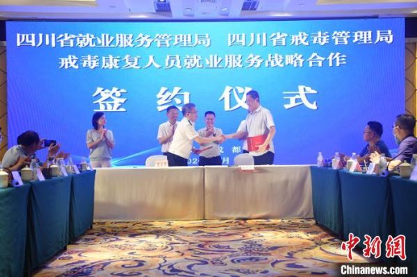 中新网成都6月22日电 (岳依桐)四川省戒毒管理局与四川省就业服务管理局22日在成都举行戒毒康复人员就业服务战略合作签约仪式。该协议就政策清单、就业指导、职业培训、创业服务、兜底措施等五个方面的事项提出了合作方案。据了解,协议签订后,双方将全面展开合作,共同推动戒毒康复人员就业扶持和救助服务工作。