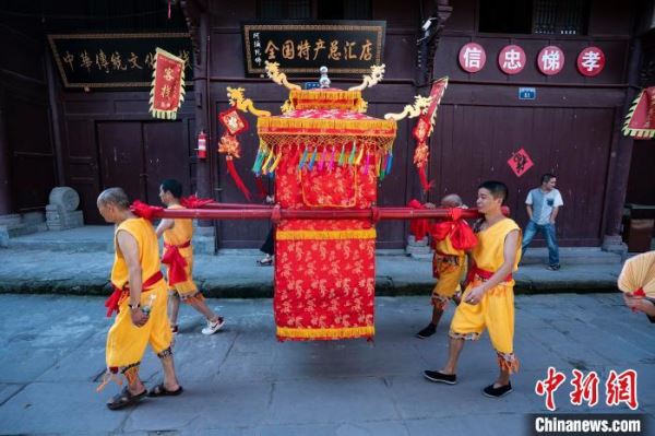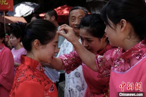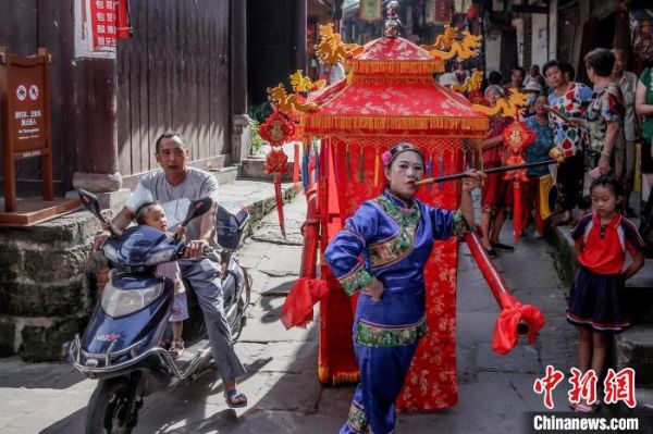 周子古镇上的传统婚俗表演。 李锋 摄
