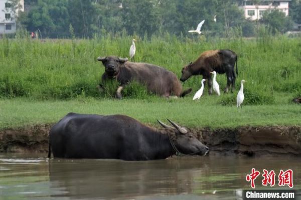 嘉陵江畔,水牛与白鹭和谐共处。 高均海 摄