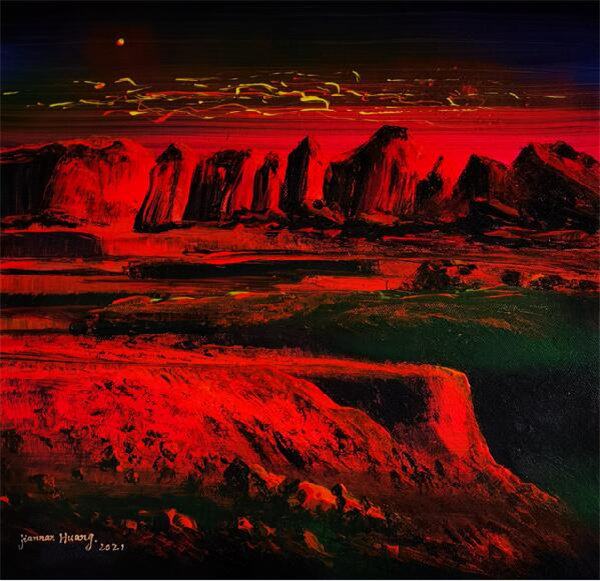 丰富的经历及积累,使黄建南融通中外,把中国传统的国画意境技法与西方的油画光影色彩完美结合,创造出独特的绘画风格,创立了其个人的绘画艺术新体系。