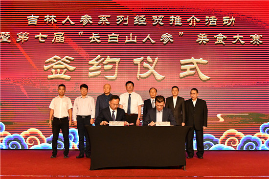 在这次的吉林省参茸办公室吉林人参系列经贸推介活动暨第七届“长白山人参”美食大赛上,长白山皇封参股份有限公司与南粤天然药物有限公司,抚松制药股份有限公司与澳门南粤天然药物有限公司,敦化市润绿农业科技有限公司与山旮旯健康食品有限公司,吉林省紫鑫药业股份有限公司与澳门风采中医药研发有限公司分别签署了旨在深化合作共拓市场的战略合作协议。(完)