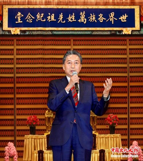 日本前首相鸠山由纪夫,东京华助中心主任、全日本华侨华人联合会名誉会长颜安等出席日本首届中华祭祖大典
