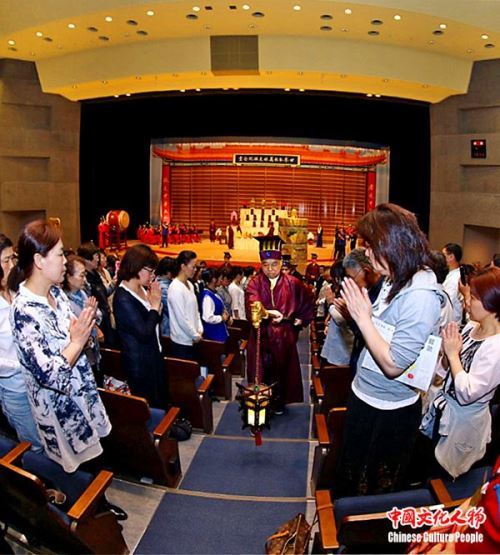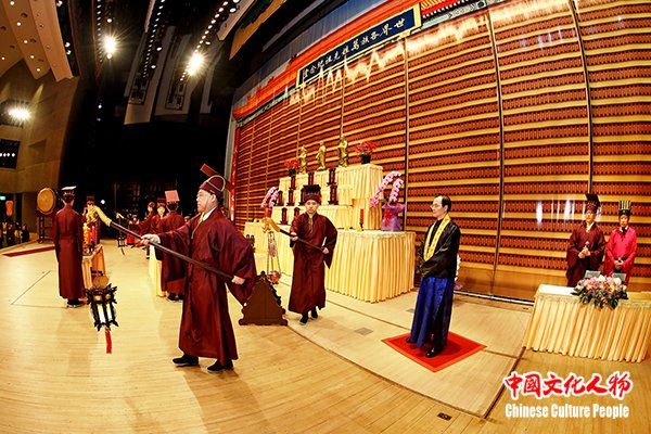 迎神,监礼官、陪祭官、主祭官和与会大众恭迎中华民族天下万姓先祖的神灵莅临