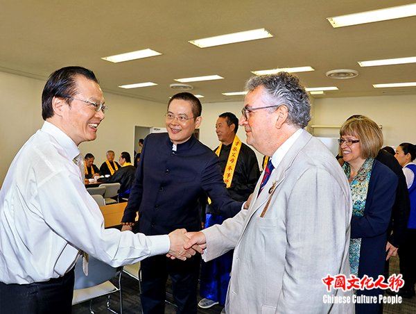 净空老法师向出席日本首届中华祭祖大典的各界嘉宾致意