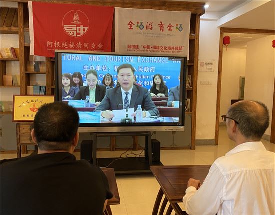 阿根廷华通网福建福清电(郑松波)9月16日上午,在福建—东盟友城大会召开期间,福建省文化和旅游厅在福州举办扩大文化旅游交流合作分论坛。中国·福建文化海外驿站(阿根廷)站长、阿根廷福清同乡会会长陈世金分别于阿根廷福清同乡会驻融联络处(福清黄檗文化促进会会馆)和阿根廷当地组织国内外相关人士和海外华侨华人线上观看。