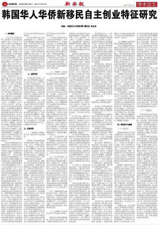 2020年12月15日刊登发表在韩国新华报上的论文。