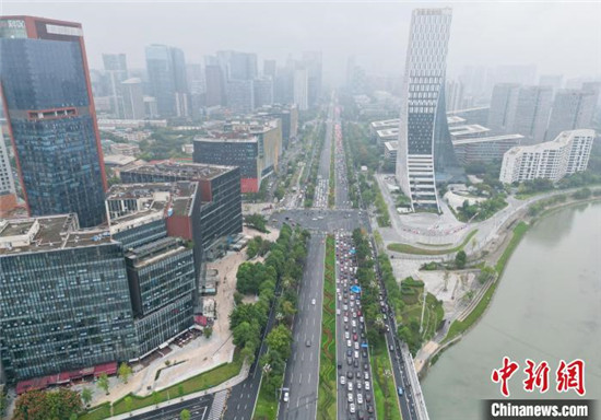 9月19日,成都主干道天府大道的车流。 张浪 摄