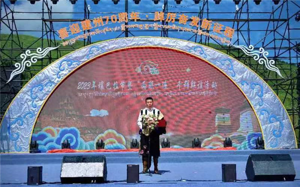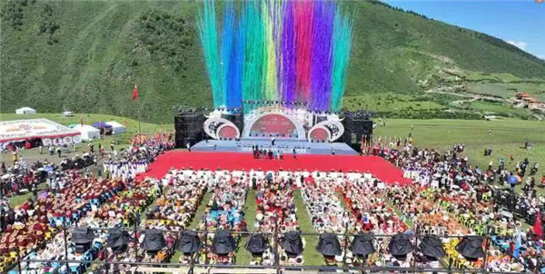 7月30日上午,四川省阿坝藏族羌族自治州“喜迎建州70周年.踔厉奋发新征程”2023年壤巴拉节开幕式在壤塘县上壤塘乡贡巴拉卡举行。