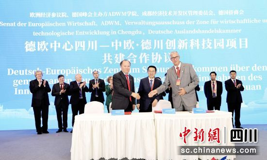 会上共实现8组签约,其中成都经开区与德国欧洲中小企业中国合作中心、中国铁建昆仑投资集团、中国铁建大桥工程局集团共同签署了《德欧中心四川—中欧·德川创新科技园项目合作意向协议》,项目总投资160亿元。除此之外,欧洲经济参议院、德国联邦中小企业协会(BVMW)、德国世界市场领导者(世界隐形冠军)研究培训学院(ADWM)、德国侨商会等签署协议,联合共建德国欧洲中小企业(四川)合作中心。欧洲蓝色无废C2C项目及中欧双碳认证中心、中欧数字贸易国家馆(中欧数字贸易港)、德国世界隐形冠军(中国成都)学院等国际项目,瑞士航空技术有限公司、德国欧博迈亚集团、德国莱茵药业集团等世界隐形冠军及中小企业签署落地成都经开区德欧中心四川—中欧·德川创新科技园意向合作协议。