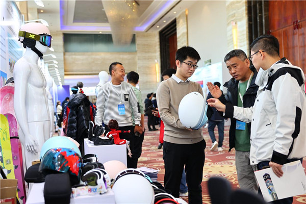 展示现场,来自国内外的冰雪产业龙头企业展出索道、造雪机、滑雪头盔等150余件冰雪装备相关展品。对接会上,有冰雪设备、冰雪装备采购,雪场运营投资,入驻保税区合作等10余个项目签订了意向采购与投资协议。