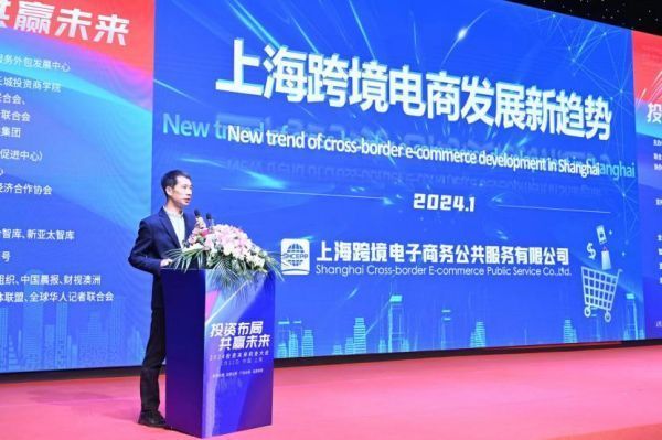 主题演讲环节,上海跨境电子商务公共服务平台有限公司副总经理顾红春分享的主题是《上海跨境电商发展新趋势》