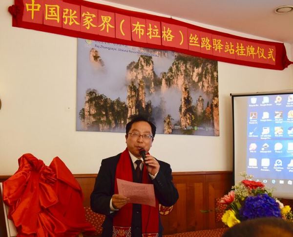 张家界(布拉格)丝路驿站挂牌由中国国际商会张家界商会、张家界市政府新闻办公室主办,张家界市旅外委、张家界市经信委协办,捷克中欧新闻社承办,湖南省政府办公厅、湖南省贸促会、湖南省非税局、长沙市贸促会的代表参加挂牌仪式。中捷友好协会副会长张利海、捷克华人青年联合会会长宗伟勇、捷克“一带一路”基金会会长赵文秀、中欧工商联合会会长刘照光、捷克华侨华人妇女联合会会长陈金妹、捷克华商会常务会长詹海灵等30多位嘉宾出席挂牌仪式。新华社布拉格分社、捷克捷华通讯、捷克布拉格时报、捷克中欧文联报等媒体负责人参加活动并进行了报道。(王建军 刘显全)