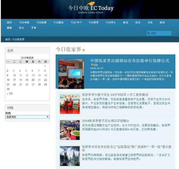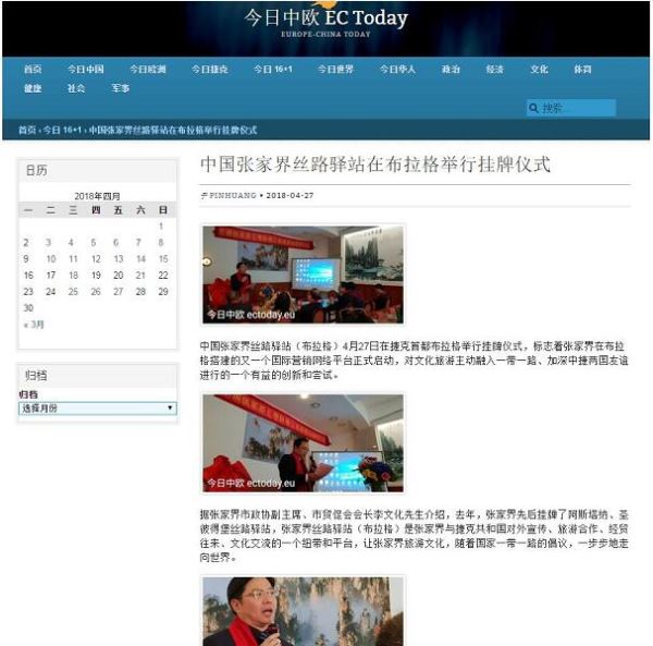 捷克“今日中欧”新闻网站开通的“今日张家界”专栏