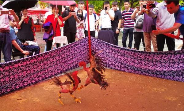 苗族传统的斗鸡民俗在“凤凰艺术边边场”精彩表演