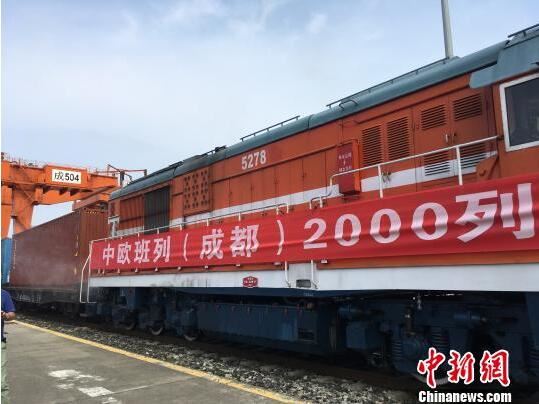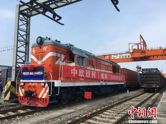 据中新网成都6月28日电 (张浪 陈军德)28日,中欧班列(蓉欧快铁)鸣笛启程,缓缓驶出成都国际铁路港,标志着中欧班列(蓉欧快铁)累计开行达2000列,成都成为国内首个实现中欧班列累计开行达2000列的城市。