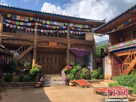中新网盐源8月16日电 (贺劭清 岳依桐)16日清晨,家住盐源泸沽湖镇格萨古村落的叶落兵玛坐在自家四合院内,用陶罐熬制摩梭传统盐茶,以便招待远方的游客。四合院花楼外的屋檐下悬挂着五色经幡与连串的松果,院落中的小桌上摆满了牦牛肉干以及晒干的果子。