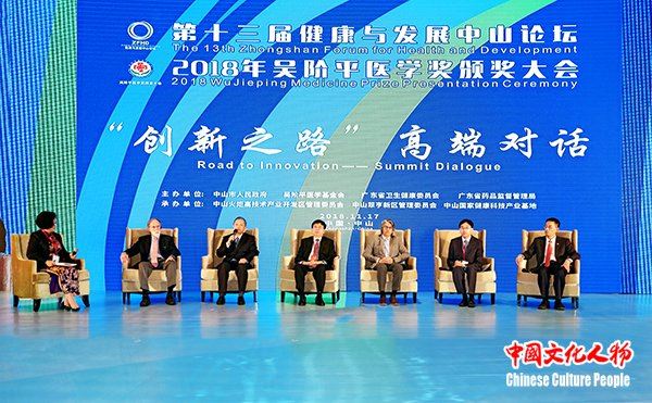 中国文化人物(主编 王保胜)11月16日至18日,由中山市人民政府、吴阶平医学基金会、广东省卫生健康委员会和广东省药品监督管理局共同主办,中山火炬开发区、翠亨新区和中山国家健康基地共同承办的“第十三届健康与发展中山论坛、2018年吴阶平医学奖颁奖大会”广东省中山市举行。第十二届全国政协副主席、吴阶平医学奖评审委员会主席、中国科学院院士韩启德,中国科学院院长、党组书记、发展中国家科学院院长、中国科学院院士白春礼,中山市委副书记、代市长危伟汉,中国医学装备协会理事长、健康与发展中山论坛荣誉顾问、原卫生部副部长朱庆生,健康与发展中山论坛秘书长、原国家食品药品监督管理局副局长任德权,2003年诺贝尔化学奖获得者彼得·阿格雷(Peter Agre),吴阶平医学基金会理事长晓萌,中国科学院院士、结构生物学专家、西湖大学校长施一公,中国工程院院士、肾病专家陈香美,中国科学院院士、神经外科专家赵继宗,中国科学院院士、中国科协副主席袁亚湘,中国工程院院士、肿瘤治疗学专家郝希山,中国科学院院士、病理学专家卞修武,中国科学院广州分院院长吴创之,国家卫生健康委员会医政医管局副局长周长强,广东省卫生健康委员会巡视员、副主任刘冠贤,中山市政协主席丘树宏,中山市人大常委会常务副主任唐颖,广东省政协办公厅副巡视员吕远球,中国可持续发展研究会名誉理事长、科技部社会发展司原司长甘师俊,吴阶平医学奖评审委员会委员、原卫生部科技司司长肖梓仁,科技部火炬中心原副主任安道昌,第十三届全国政协委员、香港食物及卫生局原局长、中国香港医疗卫生学会会长高永文,广东省药品监督管理局党组成员苏盛锋,中山市委副书记陈文锋,澳门科技大学校长刘良,广东药科大学校长郭姣,世界银行健康、营养、人口全球实践部卫生服务全球业务主任米奇·乔普拉(Mickey Chopra),中山市委常委、火炬开发区党工委书记、翠亨新区党工委书记侯奕斌,中山市政府副市长徐小莉,中山市政府副市长袁永康,中山市政协副主席、市委秘书长李长春,中山市政府秘书长李俊等领导嘉宾,以及来自海内外的医疗卫生和健康产业领域的专家学者、行业协会负责人出席开幕式。