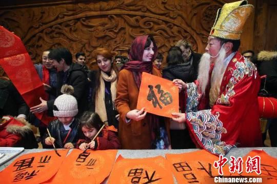 来自台湾的李璐让自己4岁的孩子用毛笔写下了一个“福”字,并将它倒贴在窗户上。“以前在台湾我们每年春节都会吃饺子、贴春联、写‘福’字,‘福倒了’就是‘福到了’。”李璐说,春节是中国人最重要的节日,希望自己的儿子长大后不会丢掉这些传统习俗。