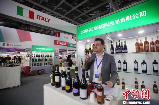 中新网泸州3月24日电 (邹立杨)24日,第十三届中国国际酒业博览会(以下简称酒博会)在泸州盛大启幕。本届酒博会以“举杯中国·品味世界”为主题,由中国轻工业联合会重点支持,由中国酒业协会主办,主宾国为意大利。来自意大利、美国、法国、德国等40个国家和地区的1000多家企业参会参展,展品汇聚全球名酒,涵盖酒类全产业链。