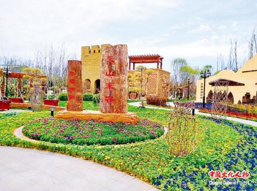 新疆展园位于园区南部“中华园艺展区”内,以“西域古路,绿洲彩带”为主题,展现新疆特色和不断发展的时代风貌