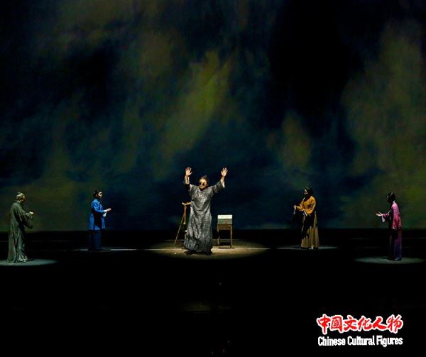 大幕拉开,在《二泉映月》悲凉的旋律中,著名歌唱家王宏伟饰演的阿炳一袭长衫,带着墨镜,出现在舞台上。阿炳生命中最重要的人——父亲、生母、养母和妻子在虚幻的时空下一齐出现,用歌剧的方式对话、发问