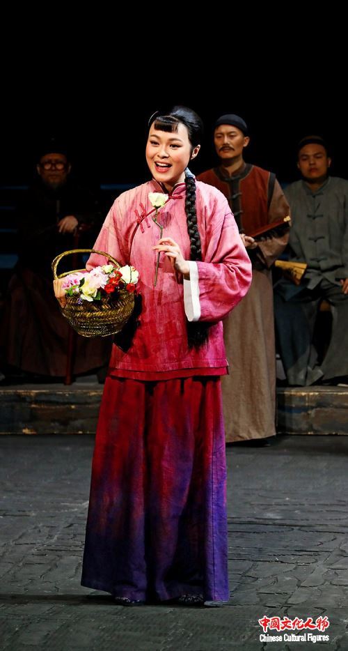 新生代实力派青年女高音龚爽饰演卖花姑娘彩娣(阿炳妻),以其清丽的音色、端庄的形象和出色的表演赢得了大家的交口称赞