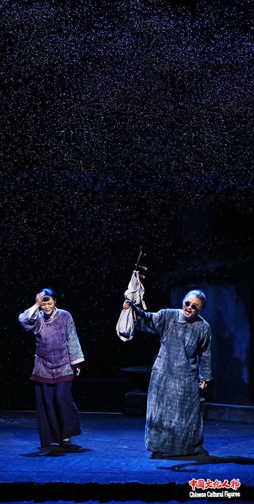 阿炳走街串巷,卖唱街头,虽朝不保夕,生活凄苦,但他依然追求着音乐,追求着光明。王宏伟在舞台上的表演一丝不苟,如歌如泣,把着位民间音乐家自始至终与命运抗争的精神表达得淋漓尽致